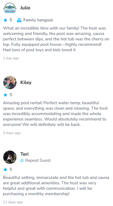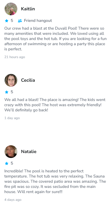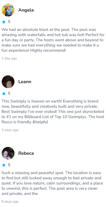 Use Swimply, which is Airbnb for pools, to see 20+ pictures of the space,